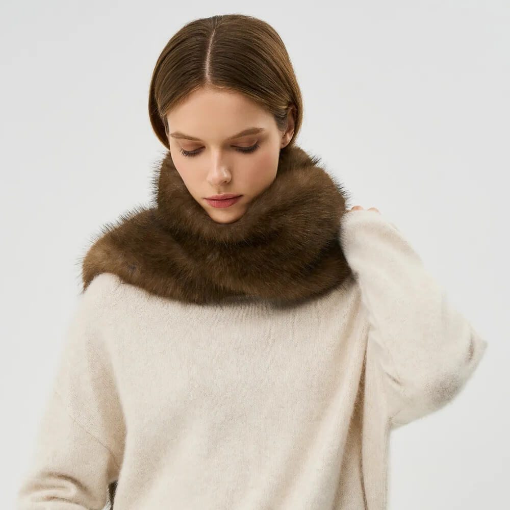 - Тепло та захист від холоду. Хутро - один із найтепліших матеріалів у сегменті верхніх аксесуарів. Воно створює природний повітряний прошарок, який утримує тепло та захищає від вітру. Навіть вузький хутряний шарф може забезпечити кращу теплоізоляцію, ніж об’ємний шарф із звичайної вовни.